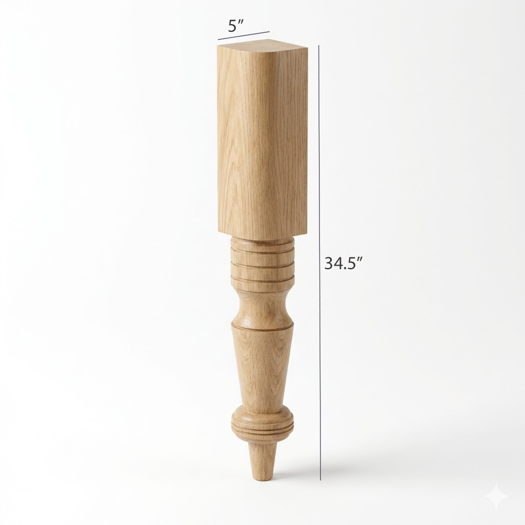 The Margaret Island leg enhances the beauty of your creations with its elegant design. Priced and sold per leg, at 34.5" tall with a 6" block. Available in 6 wood species. Arrives unfinished.
