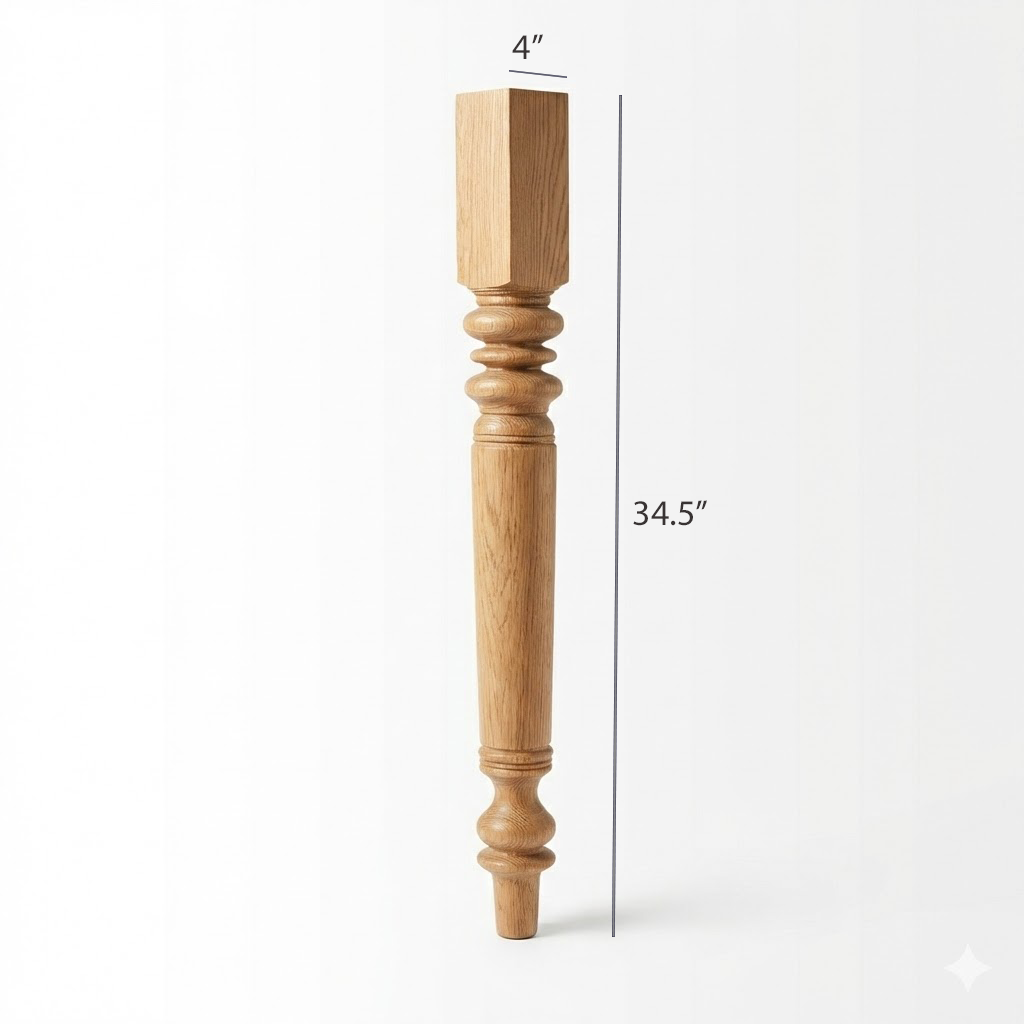 The Misty Island leg enhances the beauty of your creations with its elegant design. Priced and sold per leg, at 34.5" tall with a 4" block. Available in 6 wood species. Arrives unfinished.
